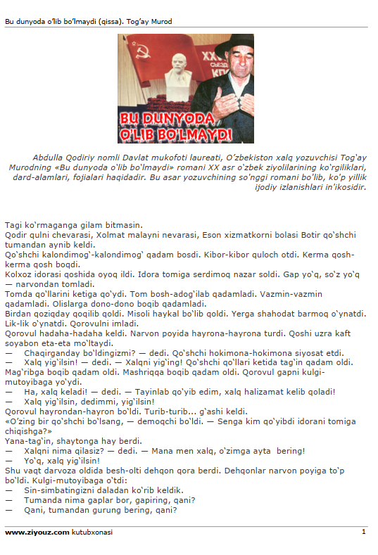 Bu dunyoda o`lib bo`lmayd...